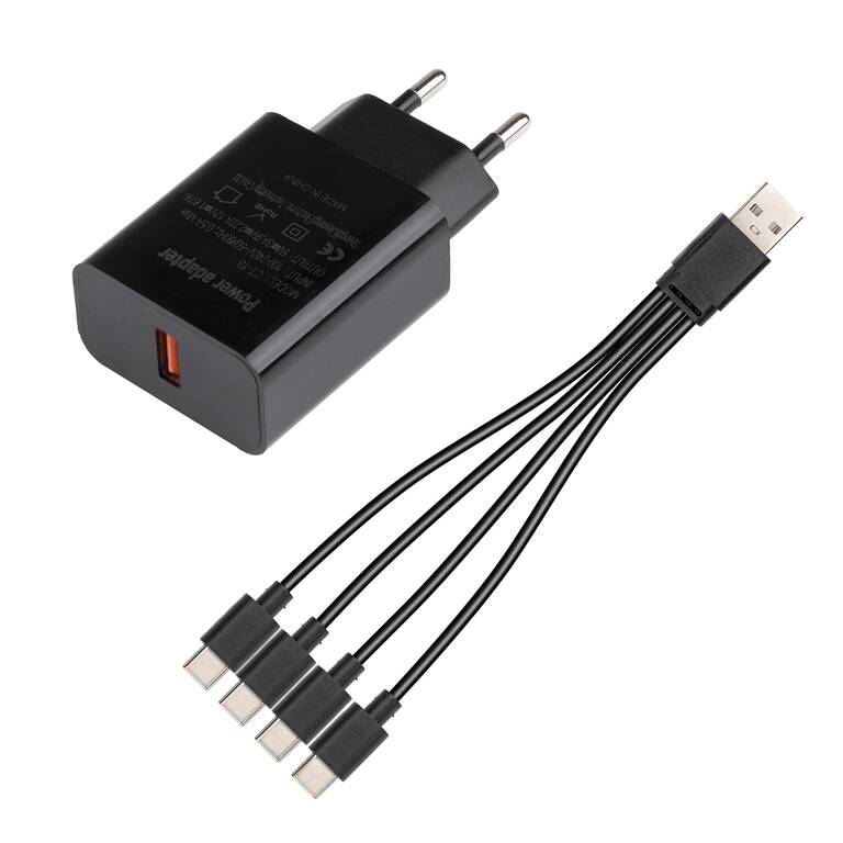 • USB-C charging cable with 4 outputs, with adapter (2A)