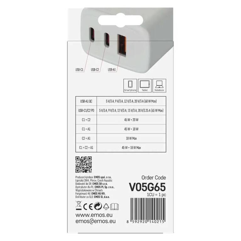 Emos univerzális USB töltő GaN PD 65W V05G65Emos univerzális USB töltő GaN PD 65W V05G65Emos univerzális USB töltő GaN PD 65W V05G65