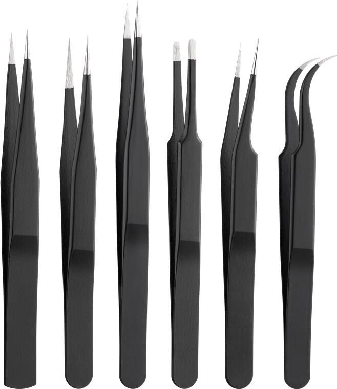 • Tartozékok: 1x hegyes csipesz egyenes típus (110 mm), 1x lapos csipesz kerek hegyű (115 mm), 1x hegyes csipesz kerek hegyű (125 mm), 1x hegyes csipesz szuper finom hegyű (110 mm), 1x lapos csipesz egyenes változat (120 mm), 1x keresztcsipesz finom ívelt hegyű (120 mm)