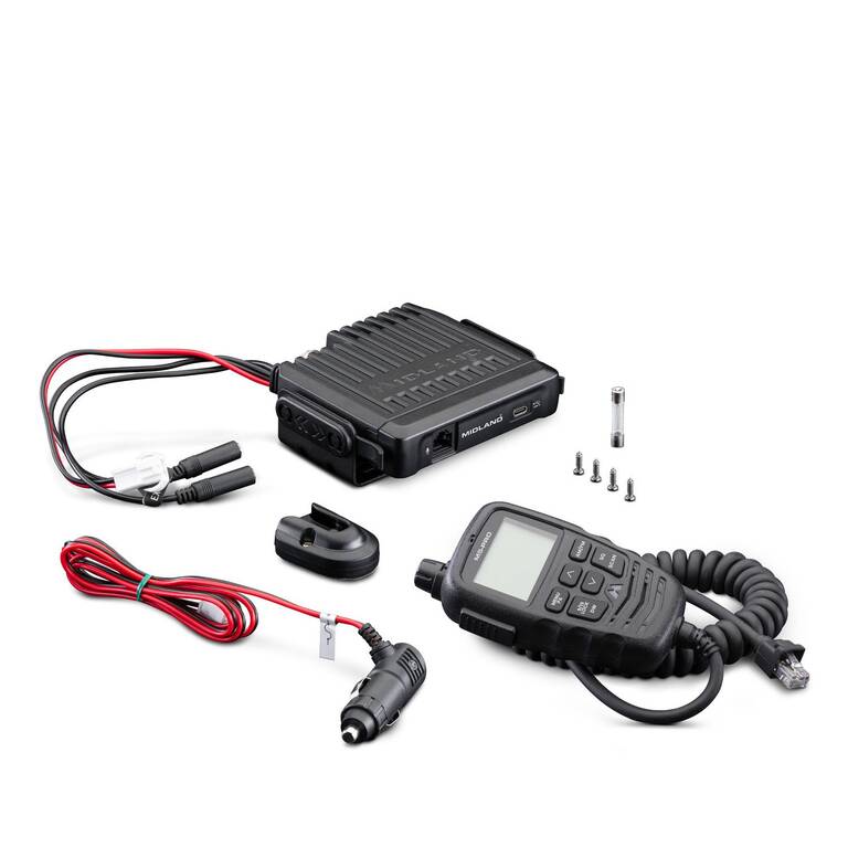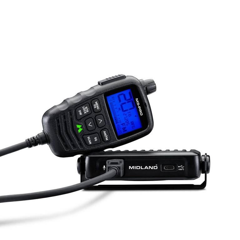 The Midland M5 PRO is a modern CB radio designed for vehicles that takes a completely new approach, as all controls and displays are integrated into the microphone. This allows the main unit to be hidden behind the dashboard, leaving only the handheld microphone visible, making it more comfortable and safer to use while driving.