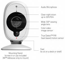 • Receive push notification if activity is detected & playback video clips with audio