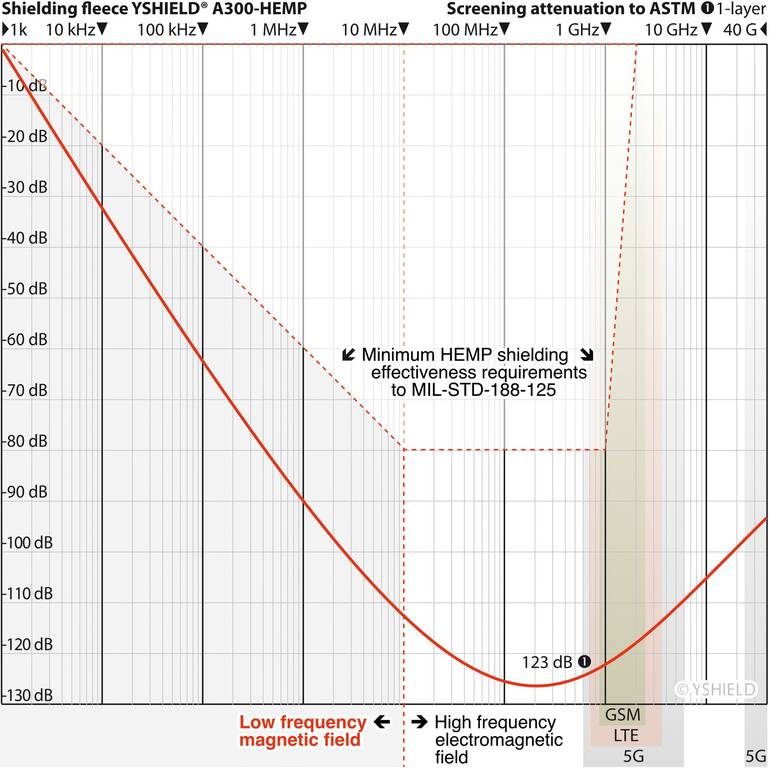 A termék MIL-STD-188-125 szerinti megfelelőségét az EMCC DR. RASEK akkreditált laboratórium tesztelte. A termék megfelel a 10 kHz és 10 MHz közötti mágneses mezők, valamint a 10 MHz és 1 GHz közötti nagyfrekvenciás mezők minimális árnyékolási követelményeinek. Ezenkívül az 1 GHz és 40 GHz közötti magas frekvenciájú mezőket az ASTM D4935-10 szabványnak megfelelően határozták meg.