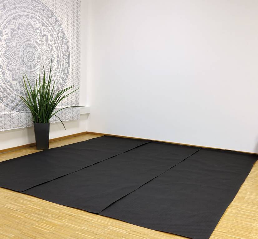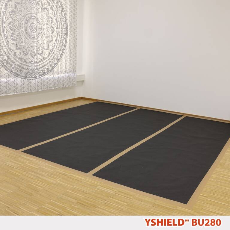 A 3 lapot egymást átfedve fektessük le a sátor alá, és rögzítsük őket csúszásgátló ragasztószalaggal (a fekete oldal felfelé). Ezután válasszon egy tetszőleges padlóburkolatot az anyag védelmére. A BU280 nem mosható, azonban a fekete oldalát óvatosan porszívózni lehet. Számos teszt és a legújabb eredmények alapján a földelés nem szükséges.