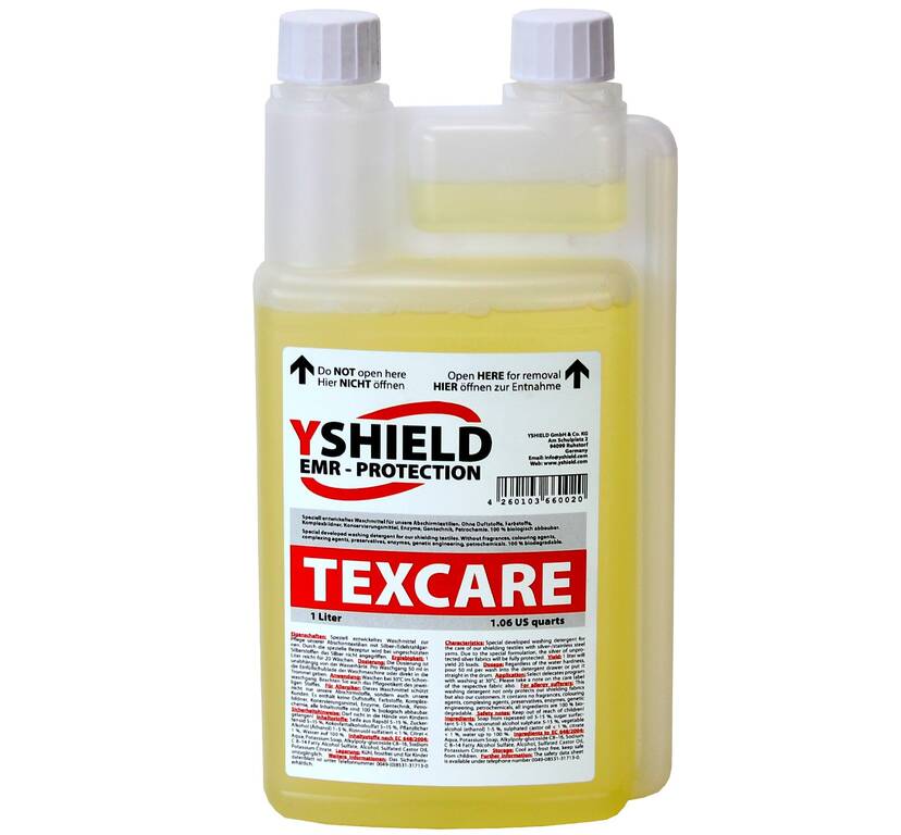TEXCARE detergents not only protect our shielding textiles and the environment: They contain no fragrances, colouring agents, complexing agents, preservatives, enzymes, genetic engineering, petrochemicals, all ingredients are 100 % biodegradable.