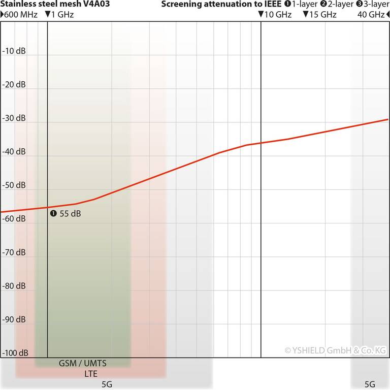 • A V4A03 egy rendkívül finom szövésű, nem korrodáló rozsdamentes acélszövet, amely védelmet nyújt a magas frekvenciájú sugárzás (HF) és az alacsony frekvenciájú elektromos mezők (LF) ellen